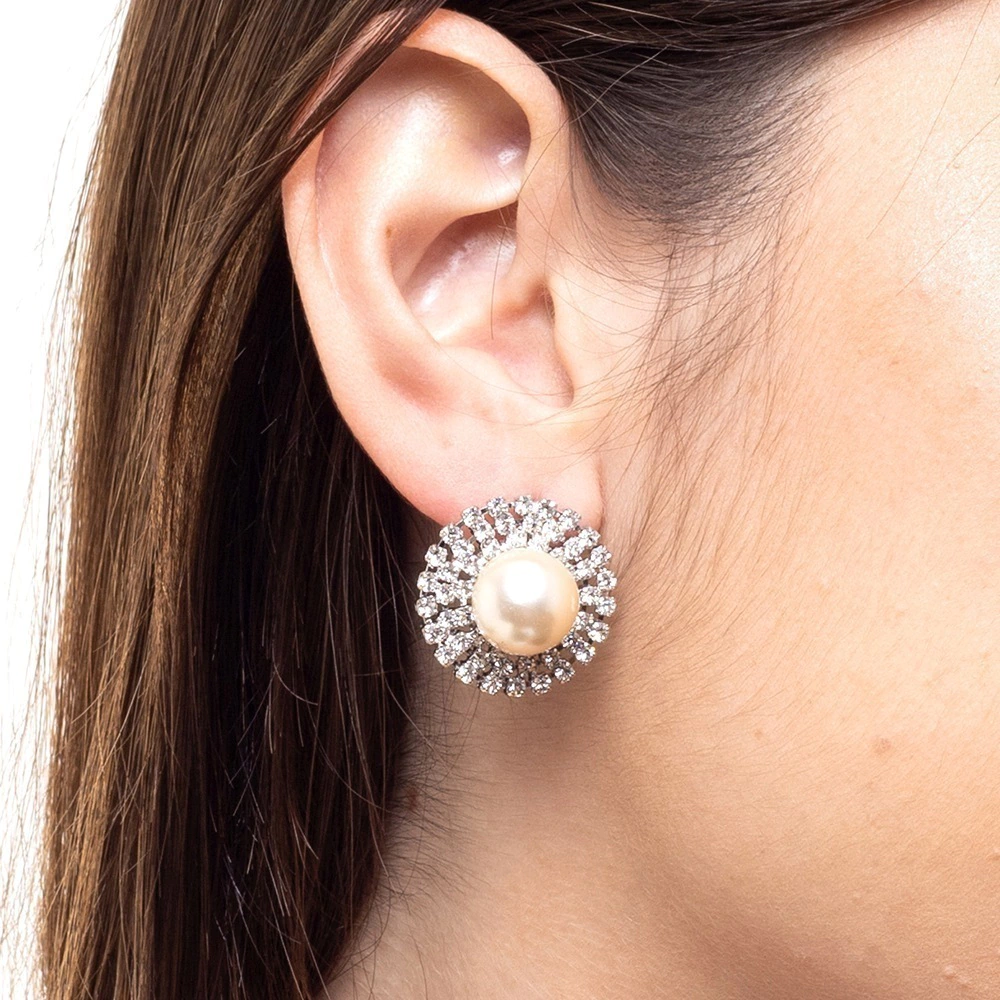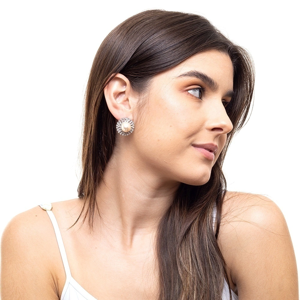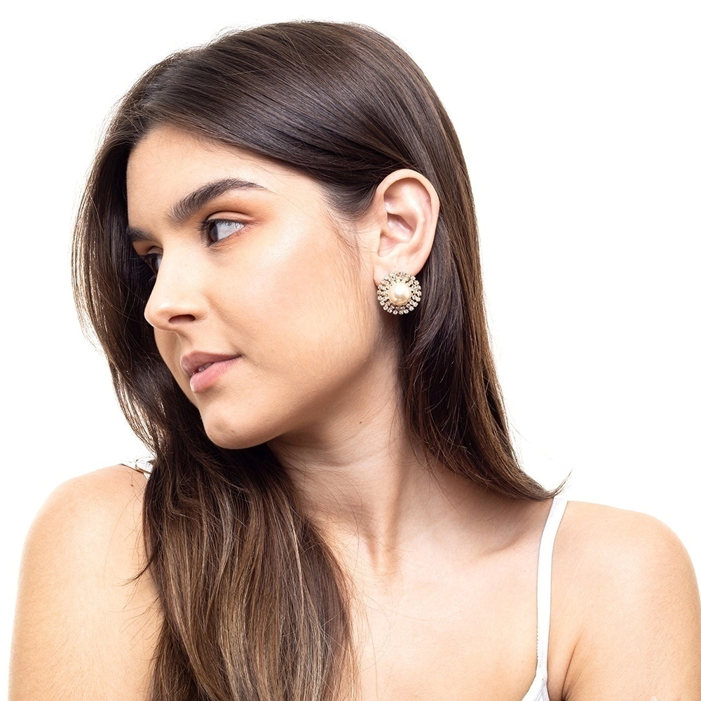 Este sofisticado brinco destaca uma pérola central, rodeada por um elegante conjunto de strass que adiciona brilho refinado à peça. O design harmonioso e atemporal torna este brinco uma escolha versátil para mulheres que buscam aliar classe e delicadeza em seus acessórios. A pérola, suavemente posicionada no centro, contrasta de maneira encantadora com o brilho intenso dos pequenos strass ao redor, criando um visual equilibrado e marcante.